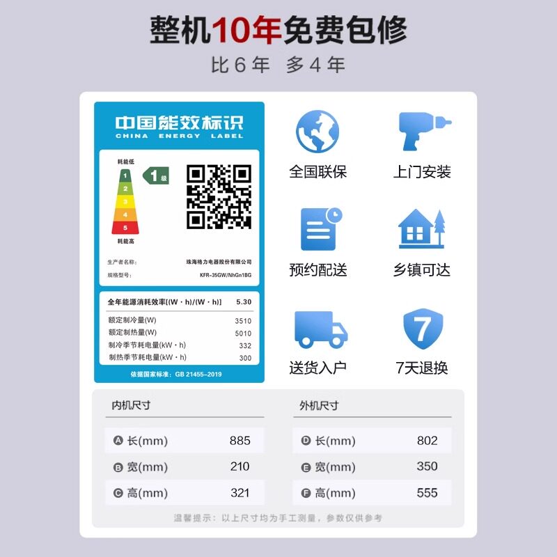 海尔净畅1.5匹空调家用挂式变频一级能效挂机冷暖两用卧室小型GCA