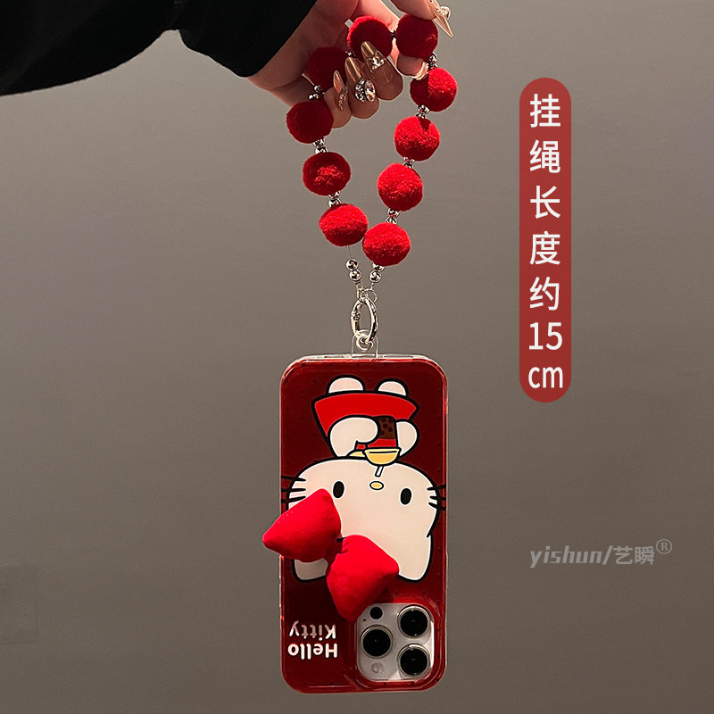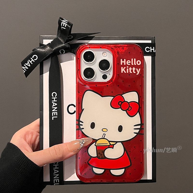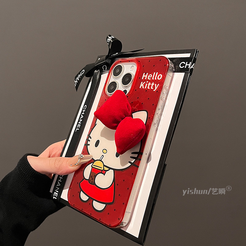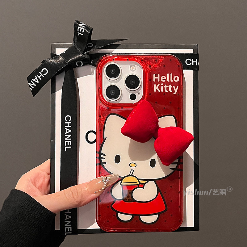 适用苹果16ProMax手机壳新款iPhone15pro日韩ins蝴蝶结喝奶茶kt猫14max带挂绳13女款12pm硅胶软max防摔保护套