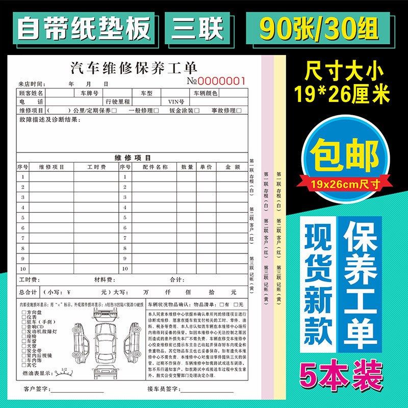 汽车维修单汽修施工修车服务保养清单报价派工结算本修理厂接车单