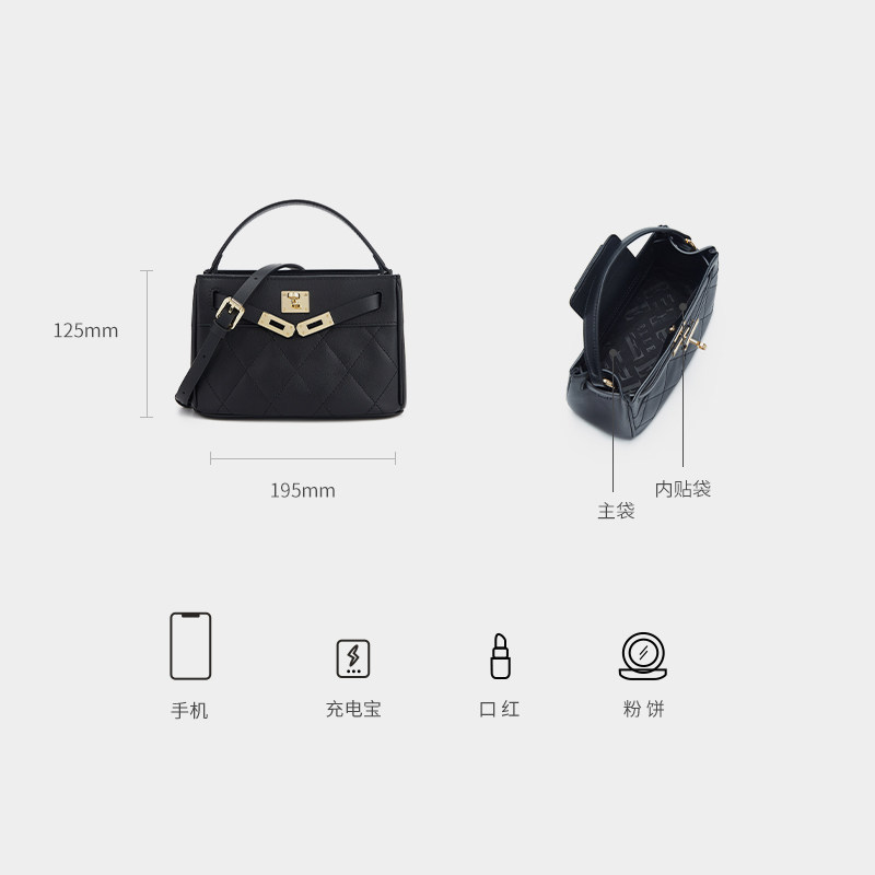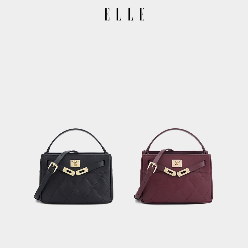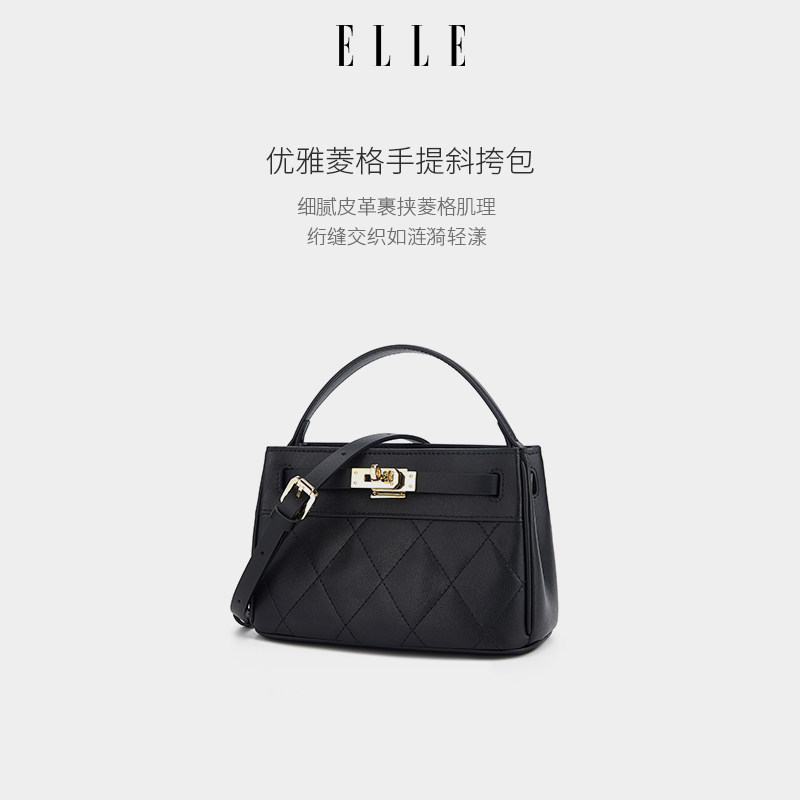 ELLE女包2026新款包包真皮凯莉包菱格纹手提秋冬好看时尚斜挎包