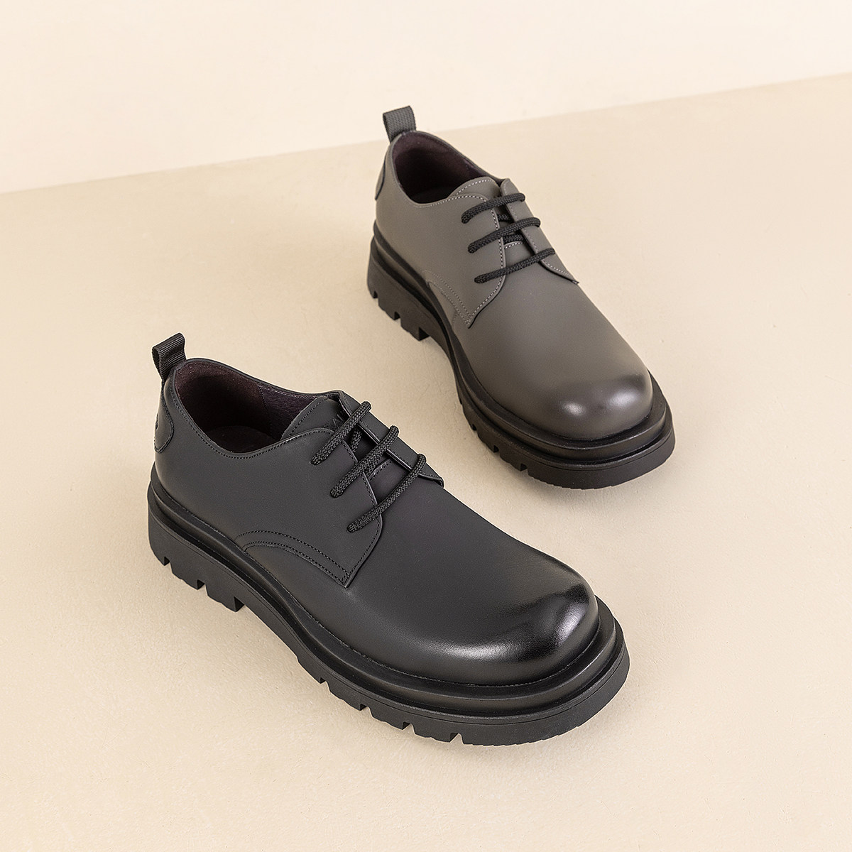 【小牛皮】青润chioryn袋鼠鞋男黑色真皮增高厚底休闲通勤风皮鞋