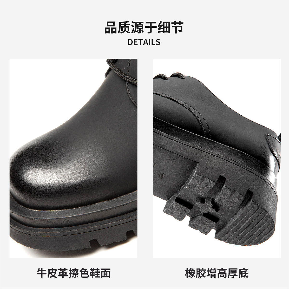 皮鞋男款高级感厚底增高英伦通勤大头德比鞋男冬季新款低帮马丁靴