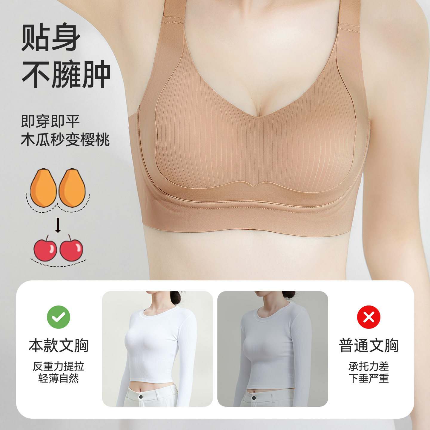 润微提拉内衣女大胸显小无痕提拉防下垂聚拢收副乳胸罩爆款文胸