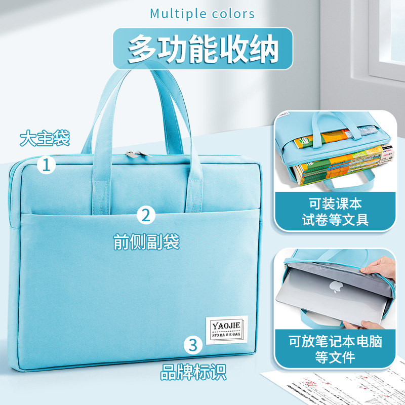 可定制LOGO手提文件袋拎书袋补习包电脑包女14寸苹果笔记本小清新公文包商务办公包帆布简约拉链包学生美术袋