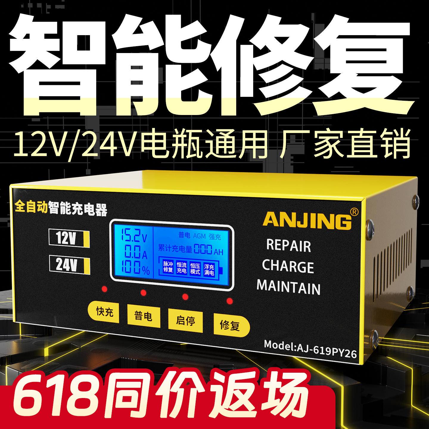 汽车电瓶充电器12V24V摩托车蓄电池纯铜全智能修复型自动充电机