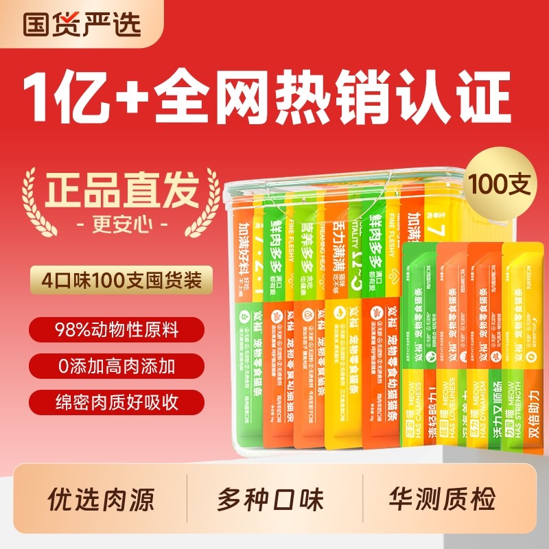 宽福猫条猫咪零食100支整箱成幼猫猫草鱼油纯条猫罐头官方旗舰店