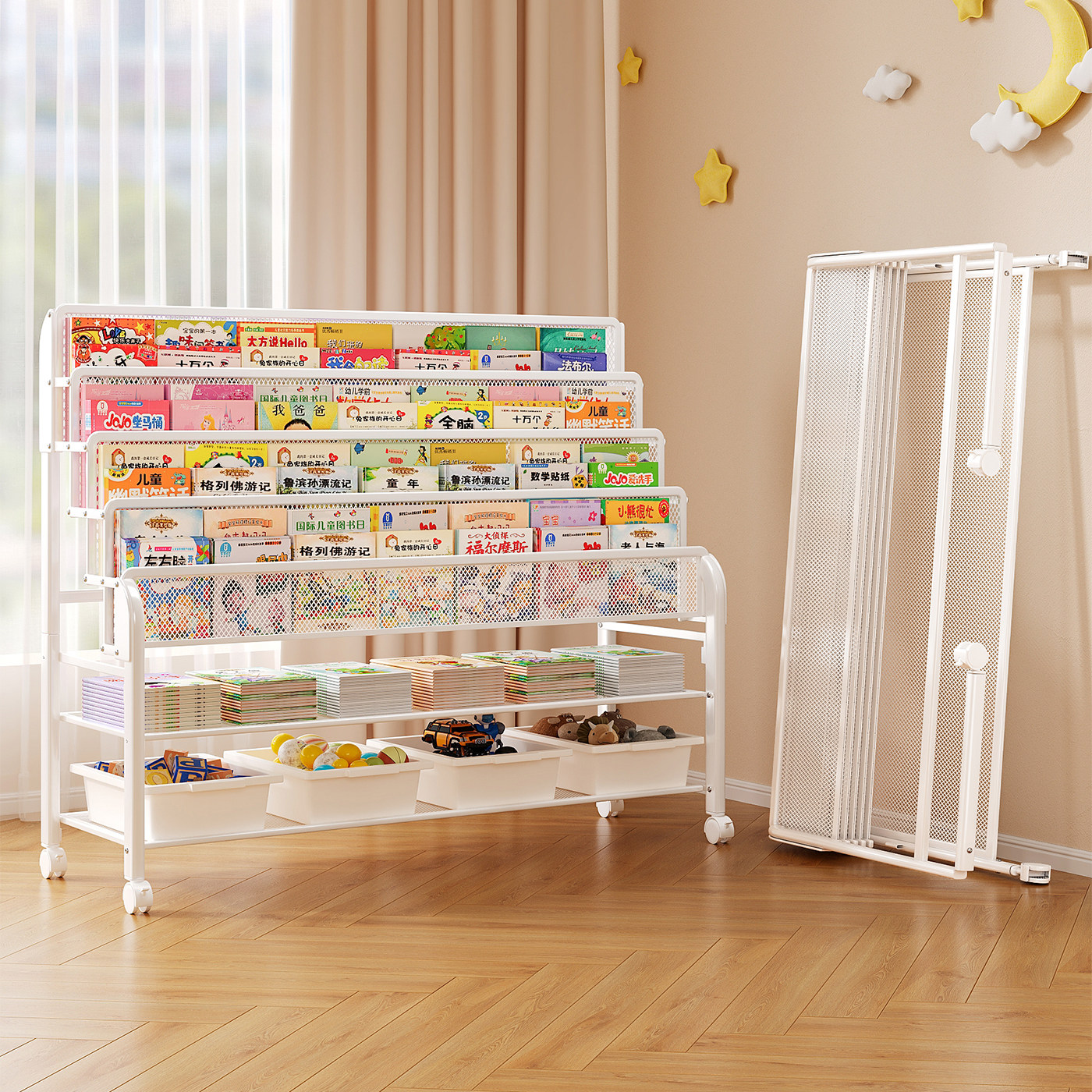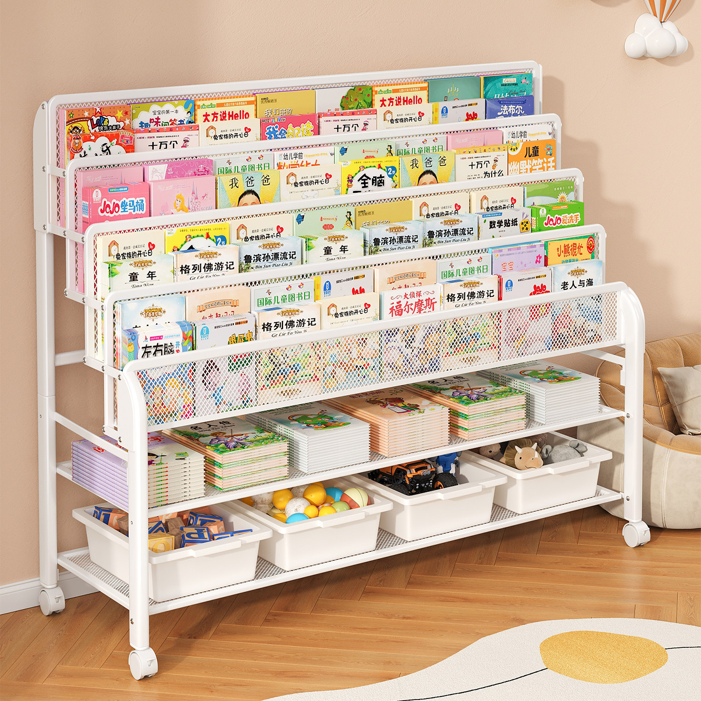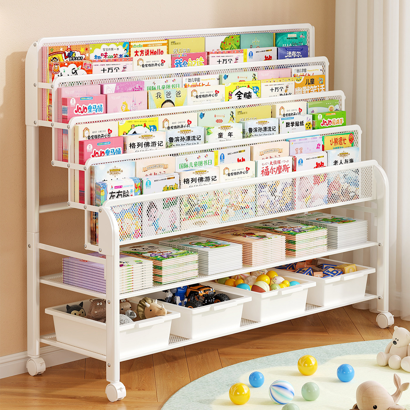 儿童书架家用绘本架阅读区移动玩具收纳架简易宝宝书柜置物架落地