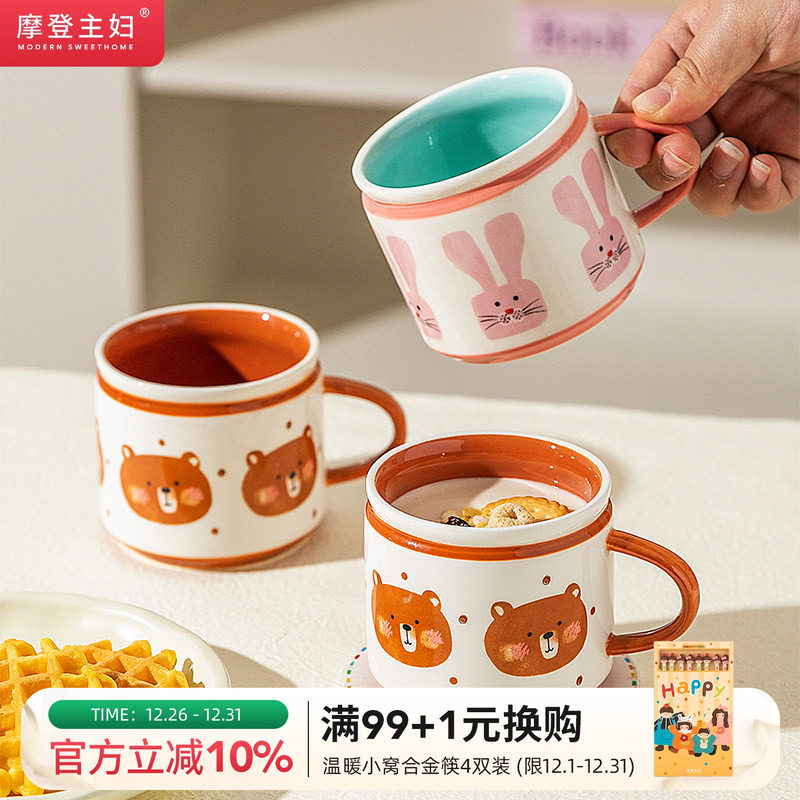 摩登主妇陶瓷马克杯家用水杯可爱情侣杯子高颜值早餐杯牛奶咖啡杯