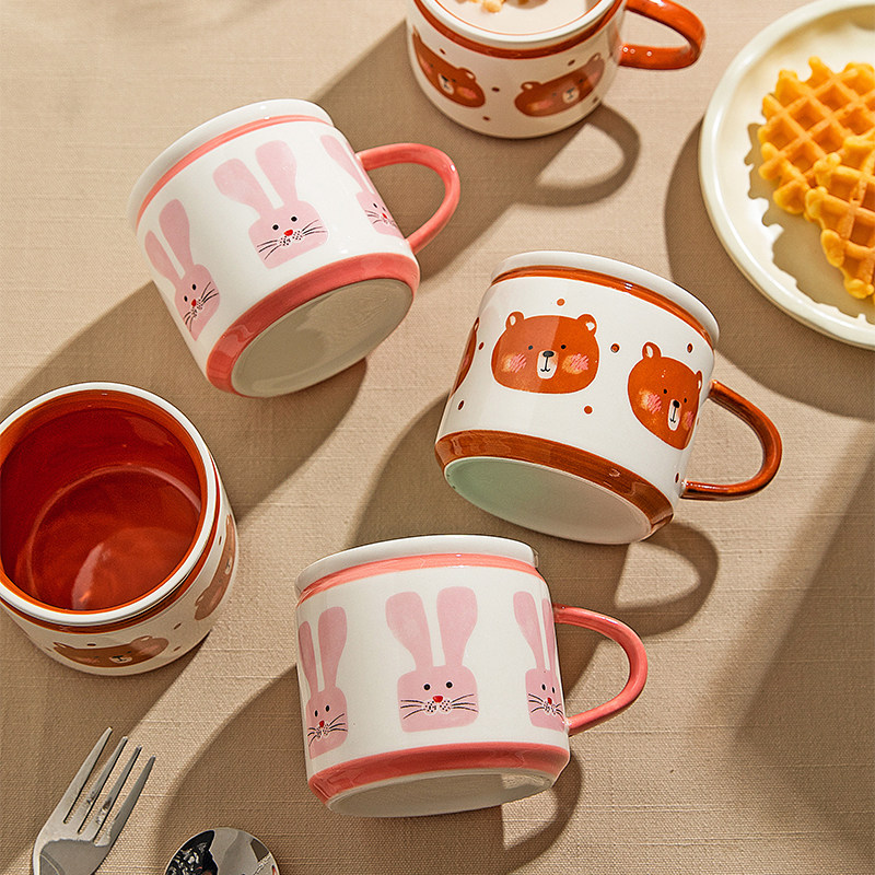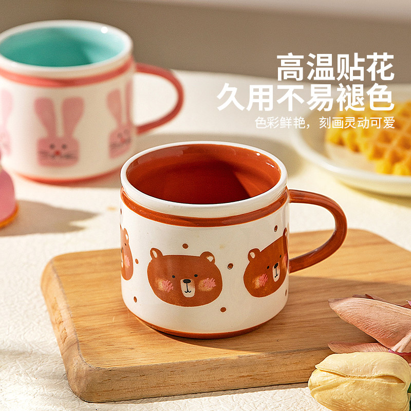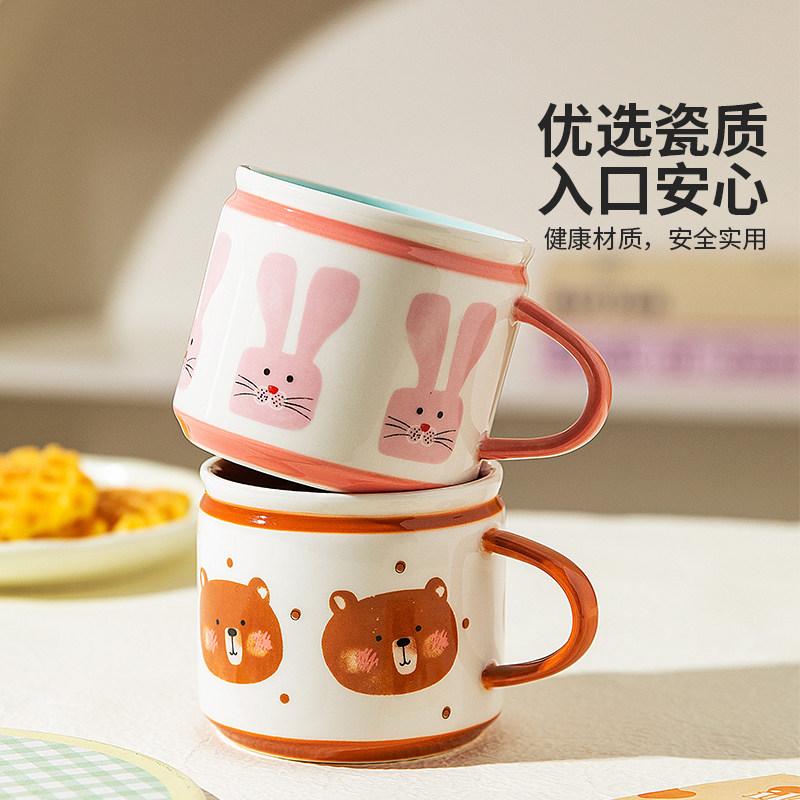 趣皿可爱陶瓷杯卡通马克杯家用办公室大容量咖啡杯情侣水杯牛奶杯