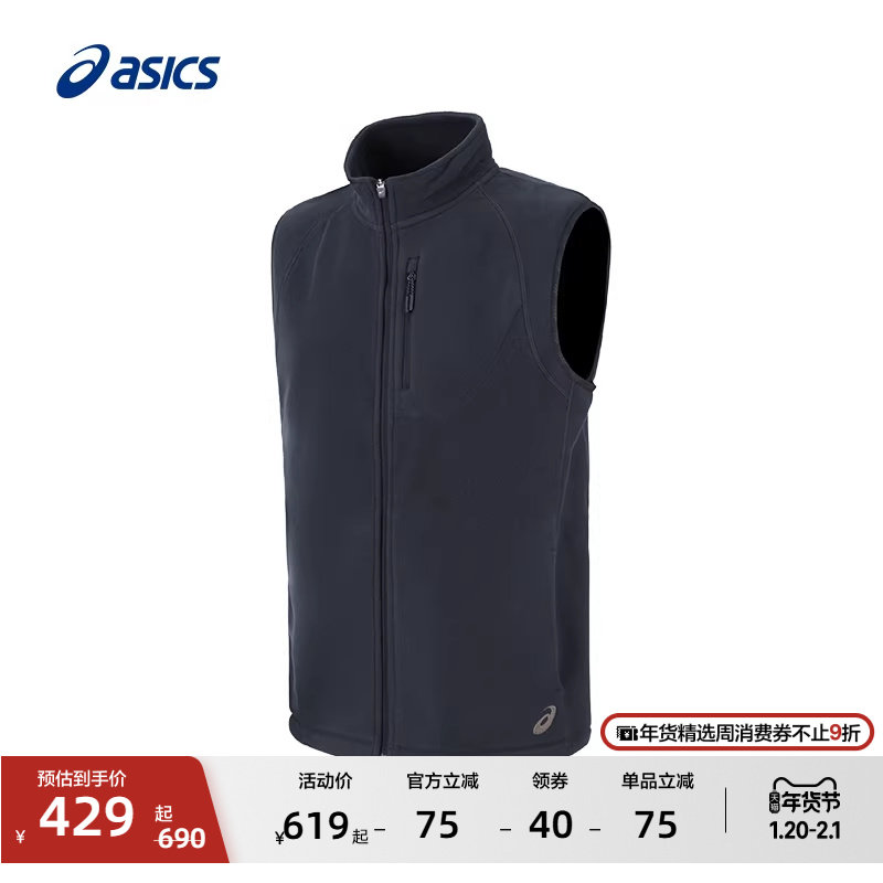 ASICS亚瑟士新款男子POLARTEC抓绒保暖运动马甲轻便舒适跑步马甲