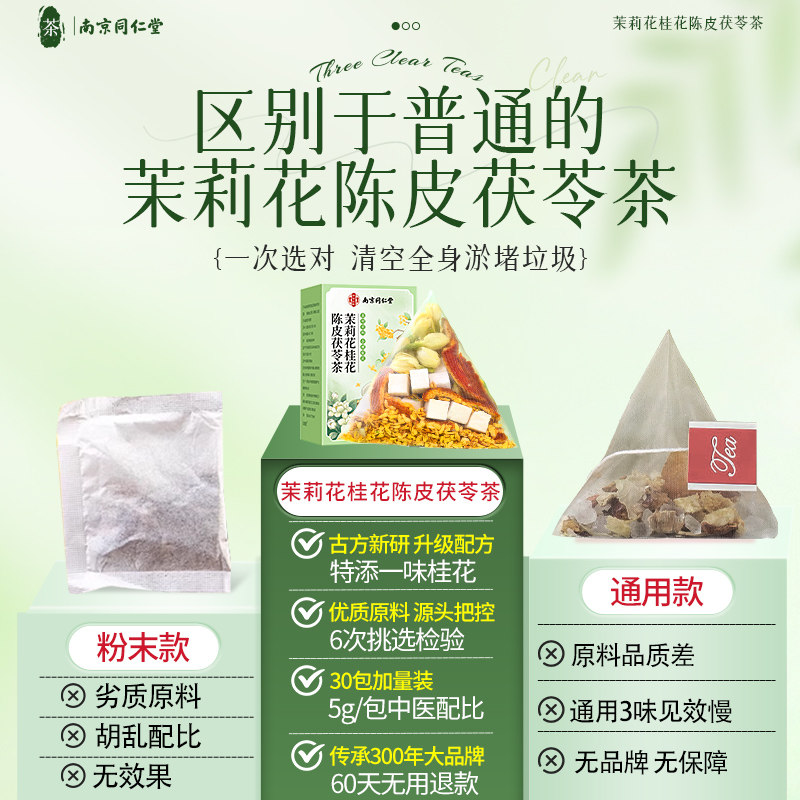 南京同仁堂茉莉花茯苓陈皮茶正品中药材桂花排浊气体香茶养生茶包