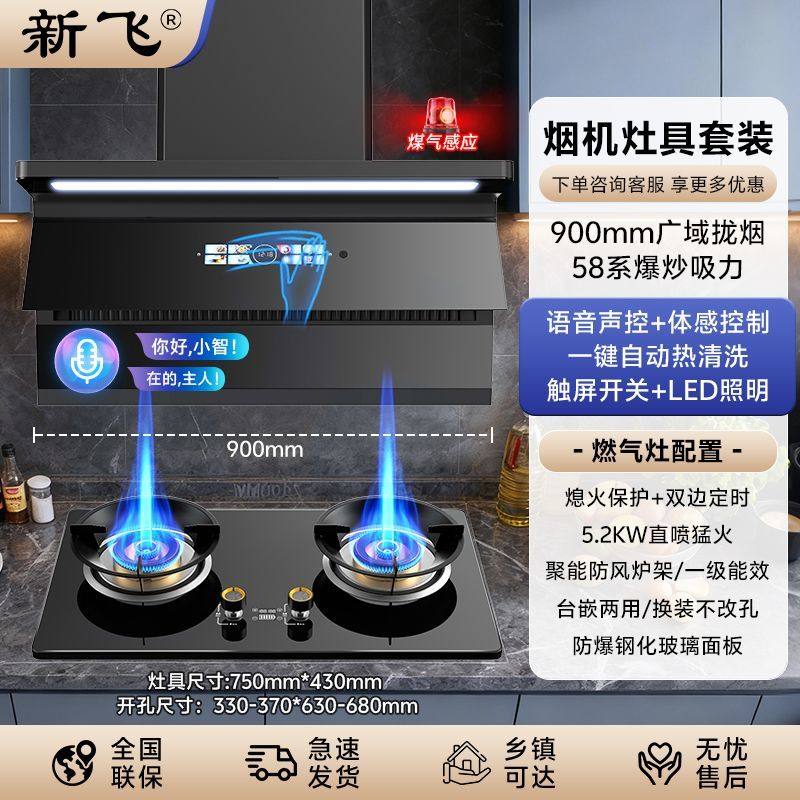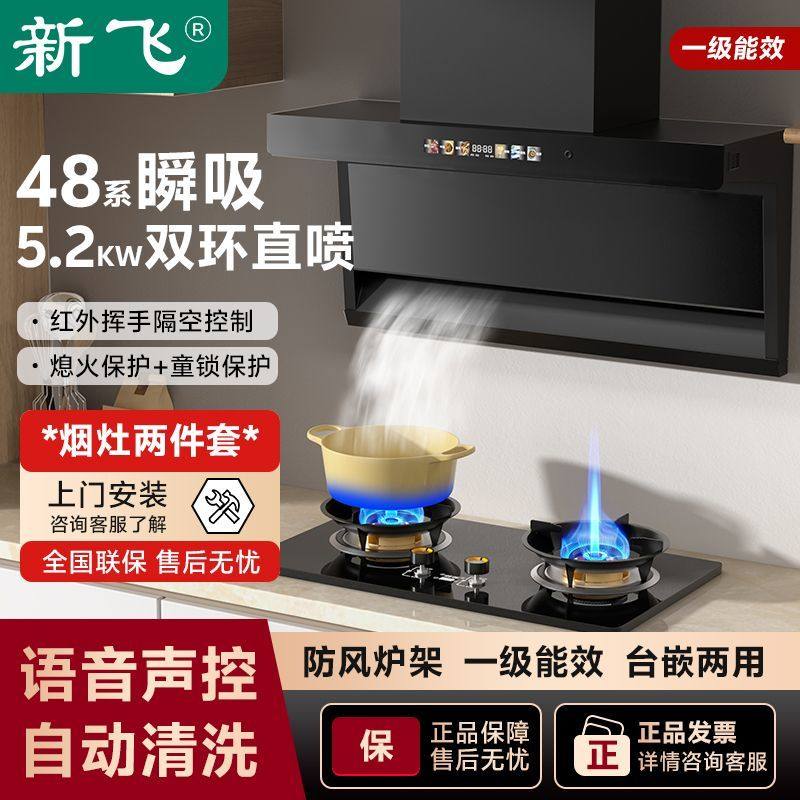 新飞抽油烟机7字型厨房油烟机套装燃气灶家用烟灶套餐烟灶两件套