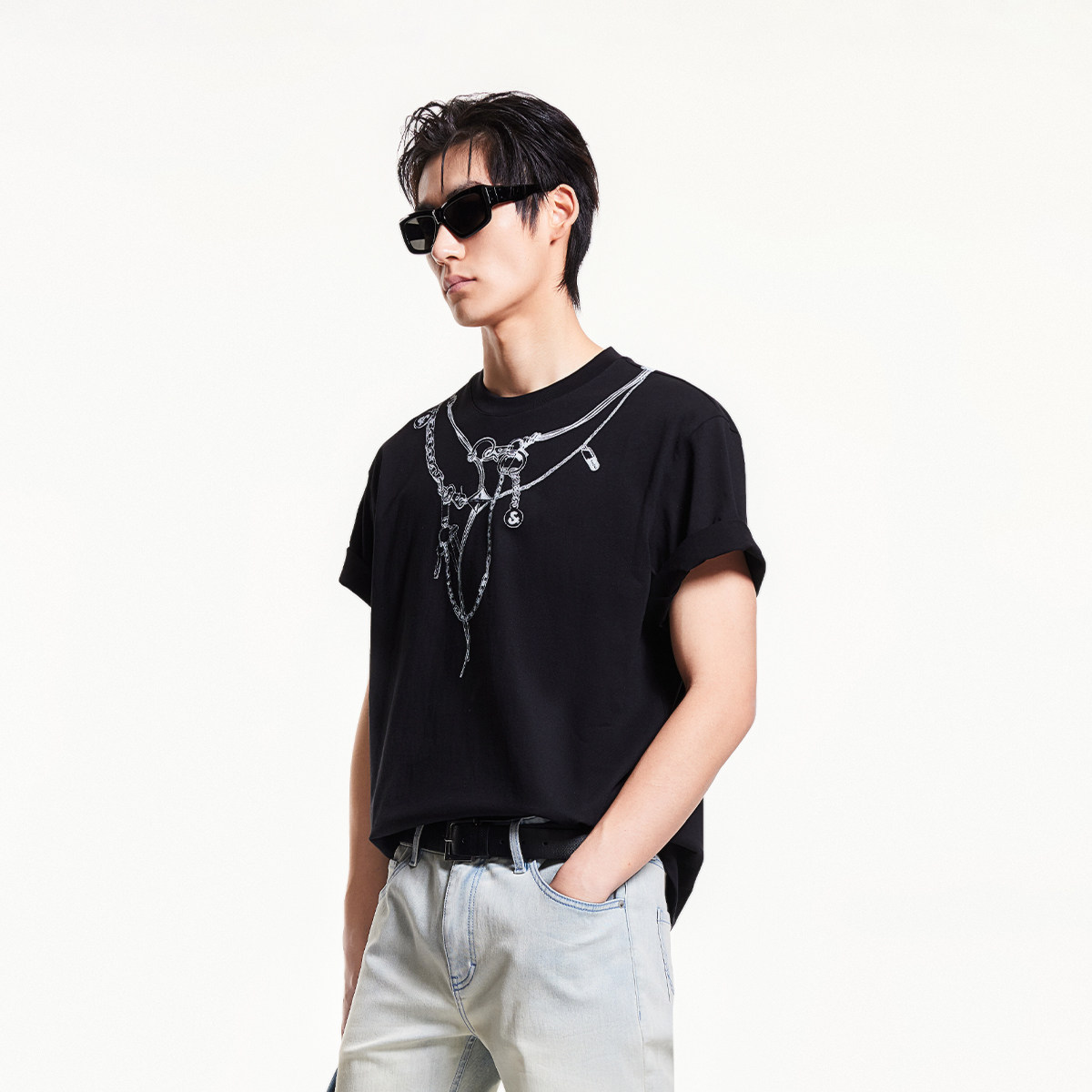 【凉感】HLA海澜之家马年贺岁系列26夏新发财大码短袖T恤上衣男装