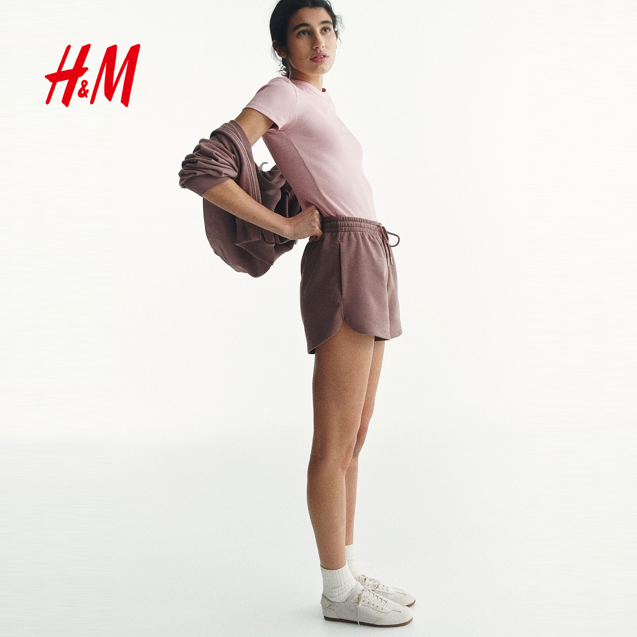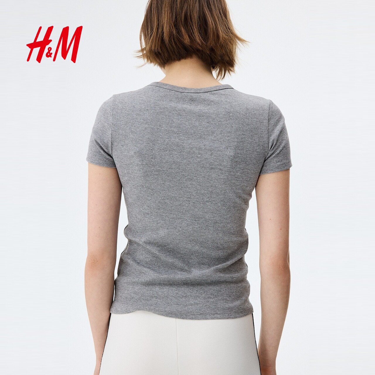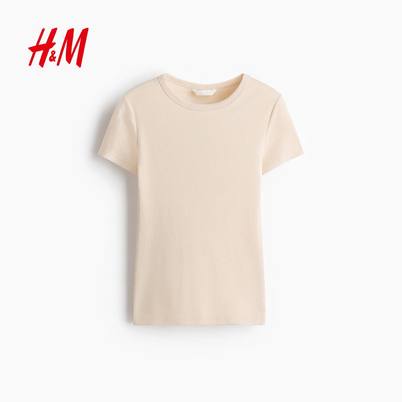 HM女装T恤2026春季新款修身短袖窄边领口直筒短袖上衣1260556