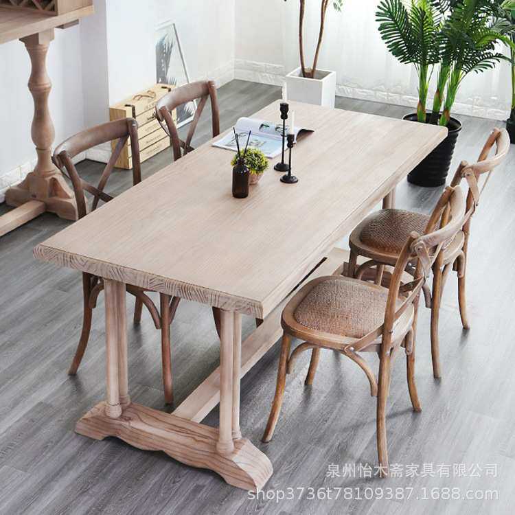美式复古全实木餐桌欧式罗马创意密室休闲家用小户型餐厅吃饭桌子