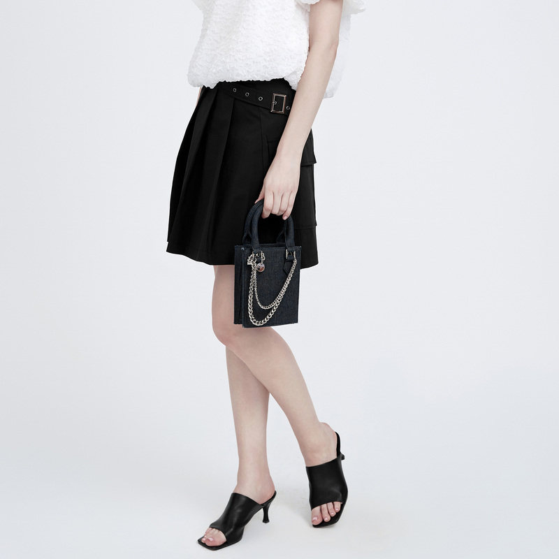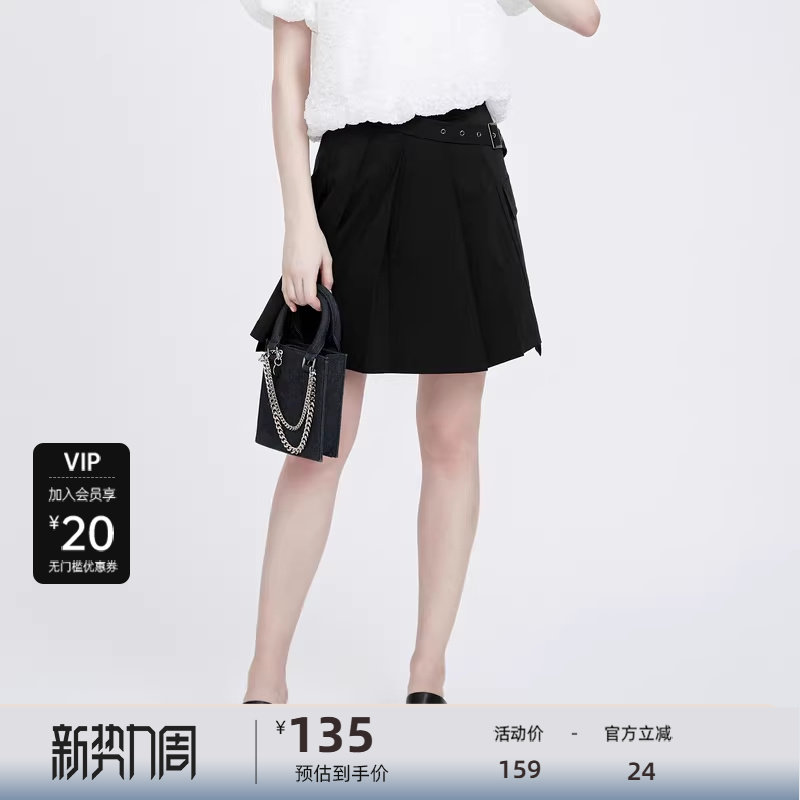 sdeer圣迪奥女装学院风休闲口袋百褶裙S20281302