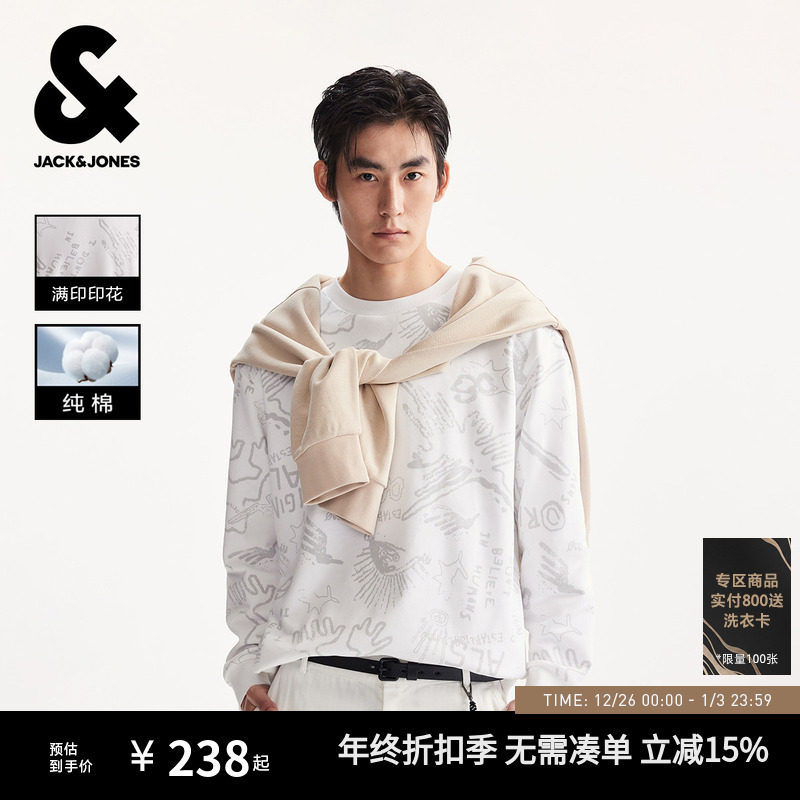 杰克琼斯男装25年秋季新款满印印花纯棉长袖T恤卫衣外套男士宽松