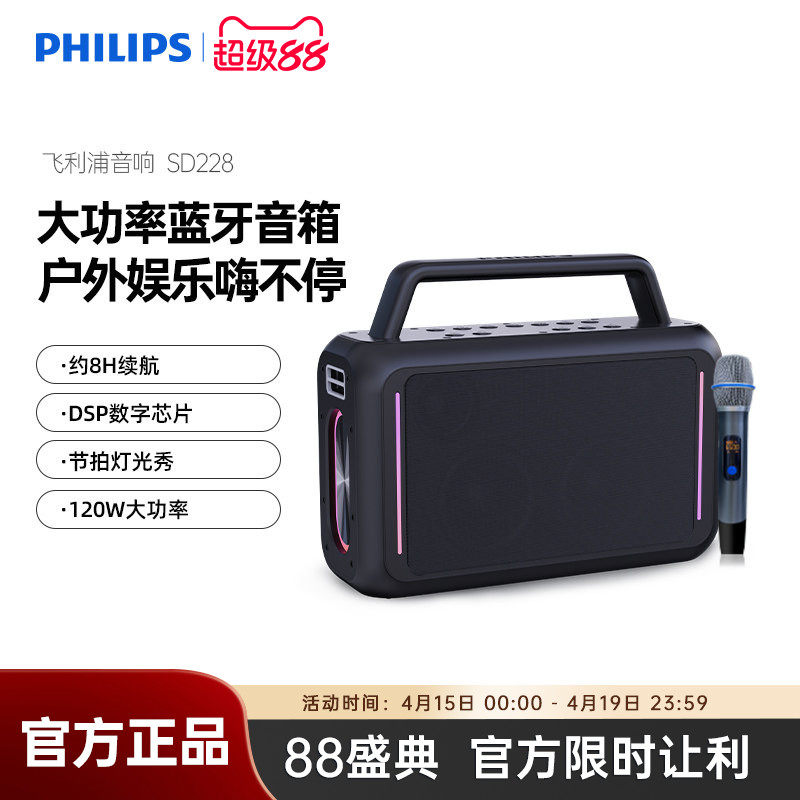 飞利浦SD228户外蓝牙音箱广场舞音响大功率手提K歌会议教学扩音器