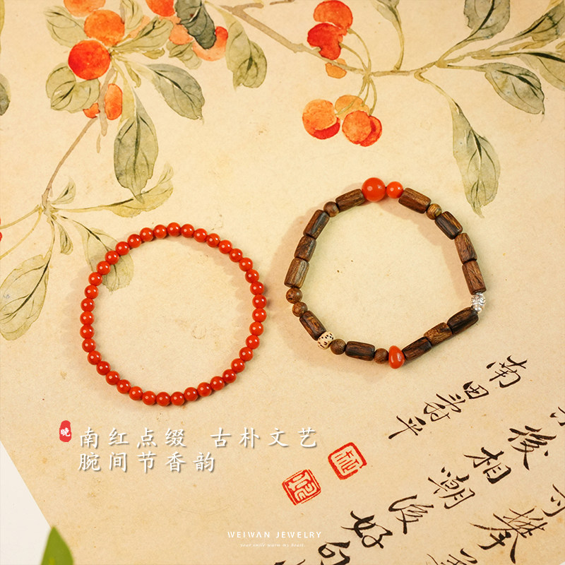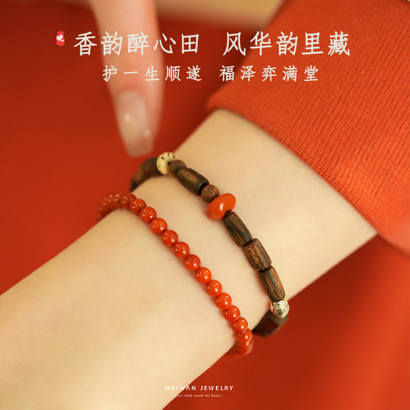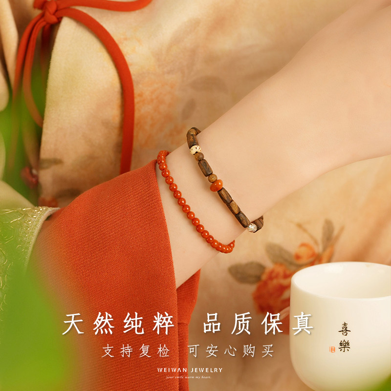 秋枫红达拉干奇楠沉香南红手串女天然木质佛珠文玩新中式真品礼物