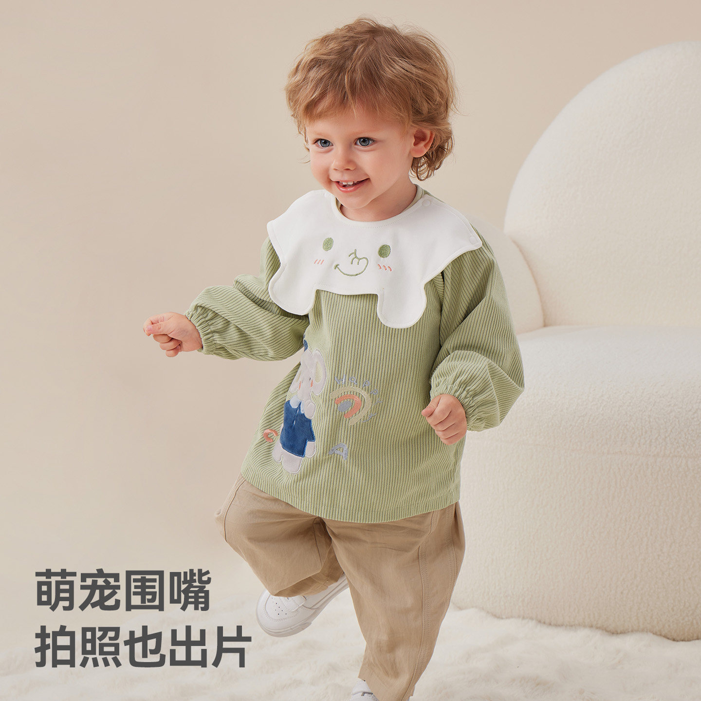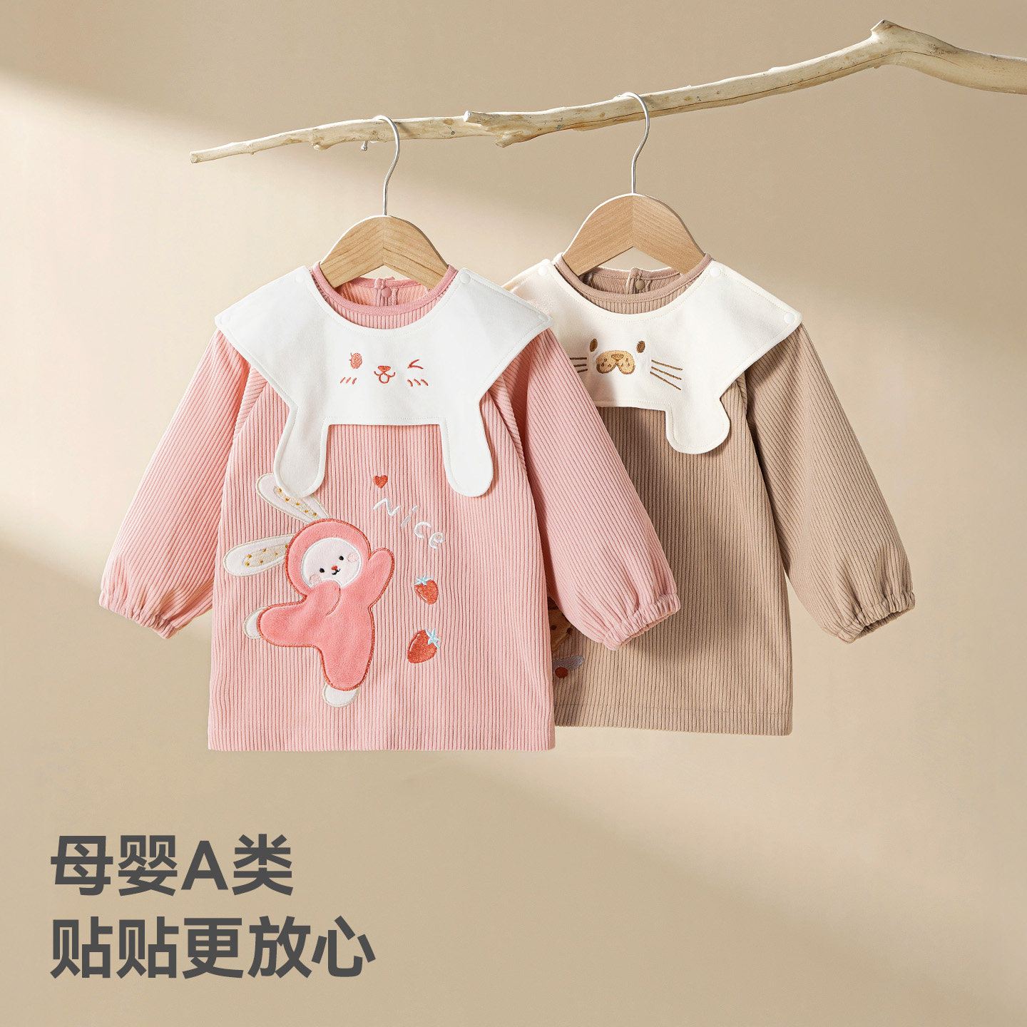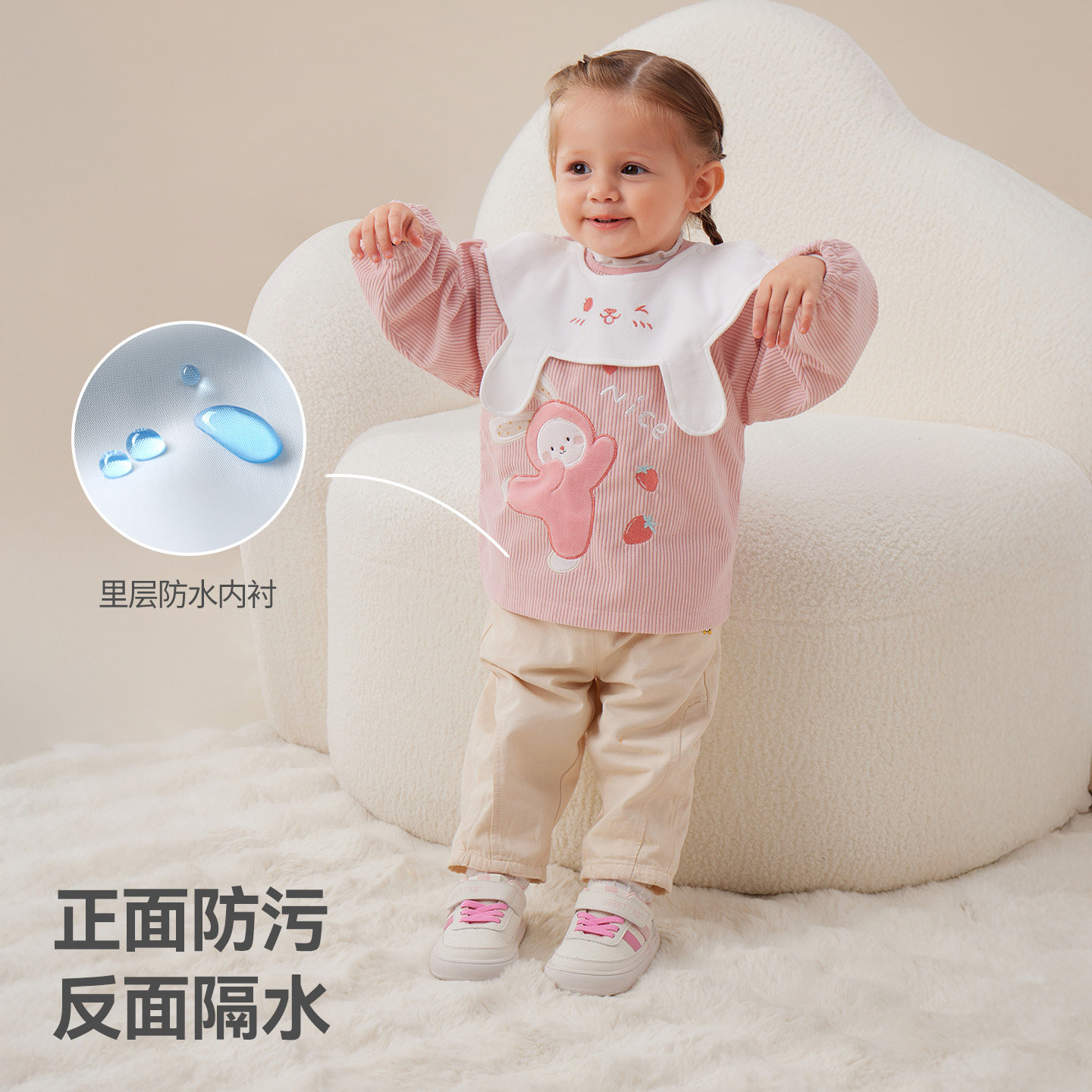 贝肽斯灯芯绒防水罩衣男女宝宝吃饭围兜幼儿园儿童围裙冬天反穿衣
