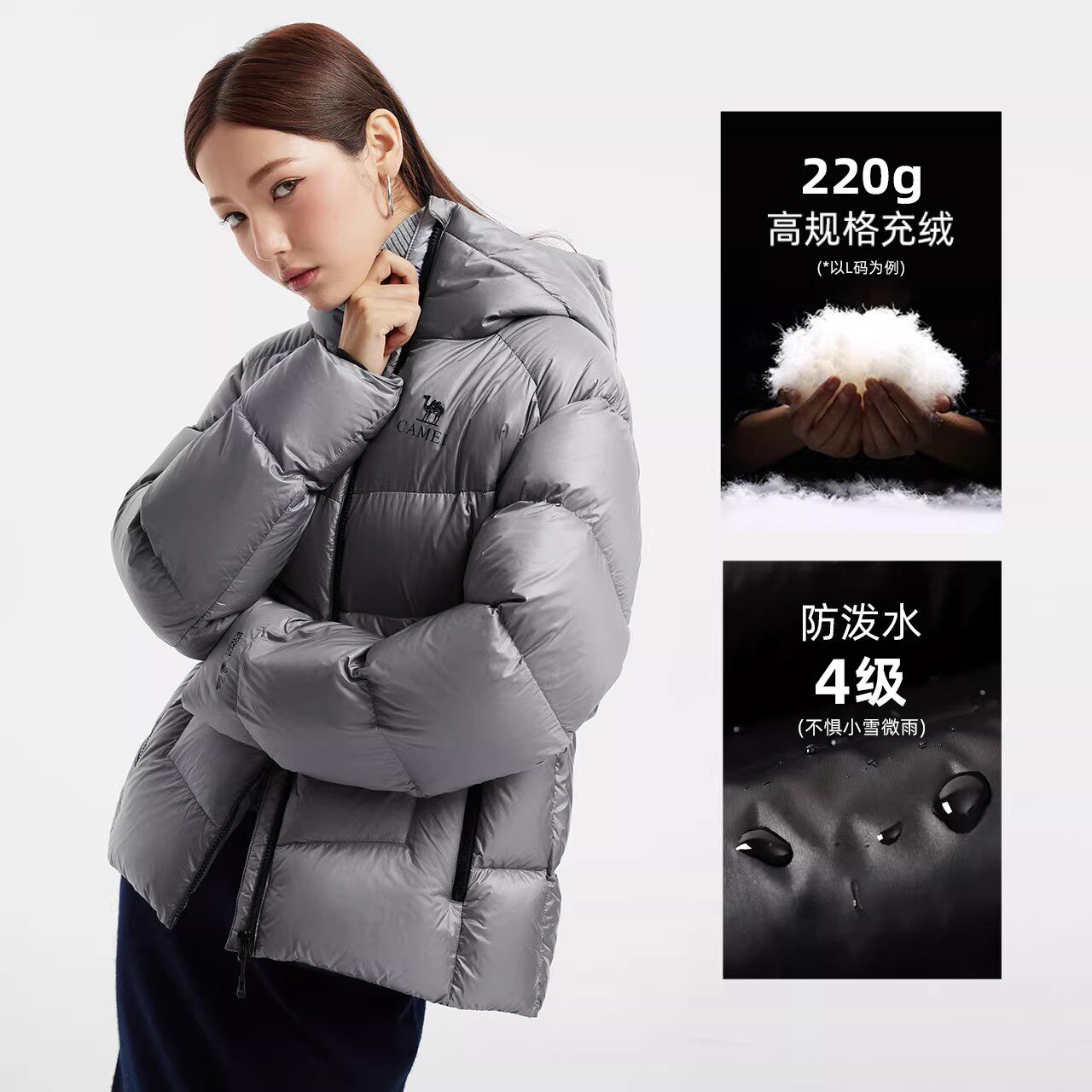 骆驼羽神女装鹅绒羽绒服短款2025冬新款保暖加厚连帽羽绒鹅绒外套