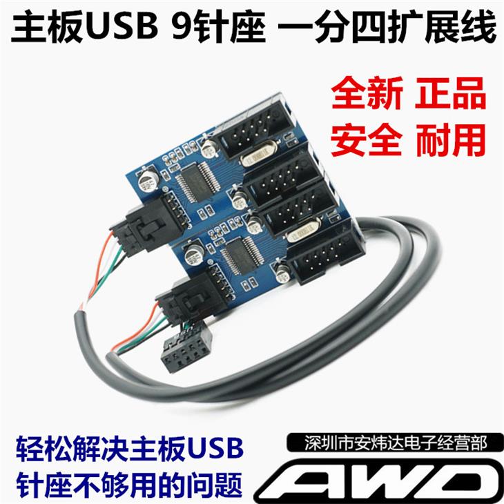 主板USB9针一分二一分四杜邦分接线USB2.0 9PIN转双9PIN扩展线HUB