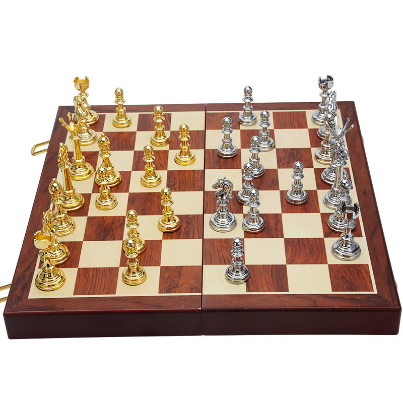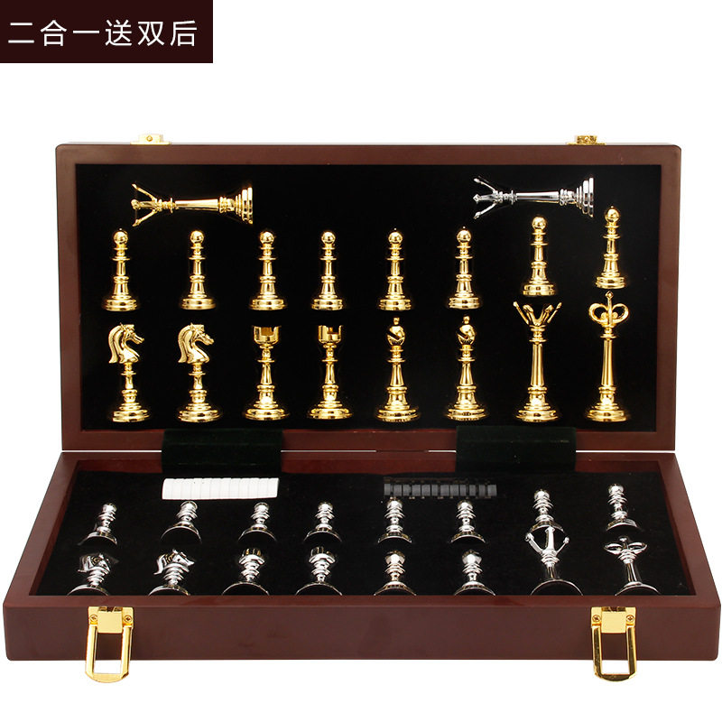 象棋金属国际象棋套装折叠棋盘学生大号古铜色棋送礼摆客厅装饰品
