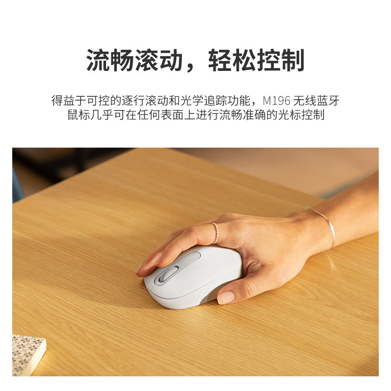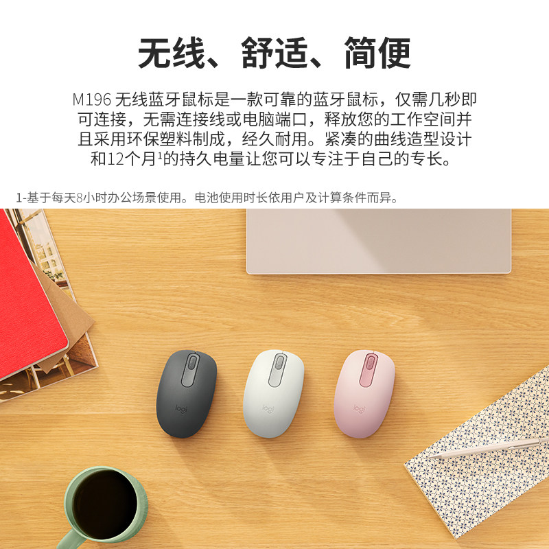 罗技M196无线鼠标蓝牙5.0办公家用便携紧凑舒适电池电脑笔记本