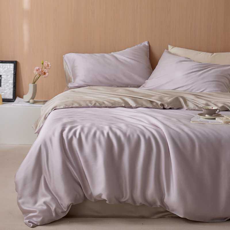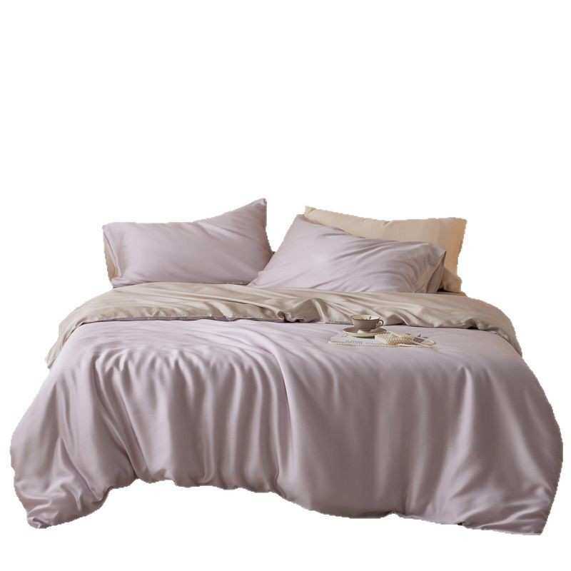 高端A类60S纯色兰精天丝拼色四件套夏季凉感丝滑床单床笠被套床品