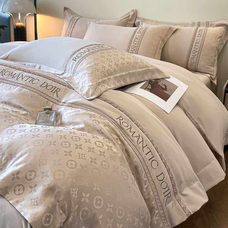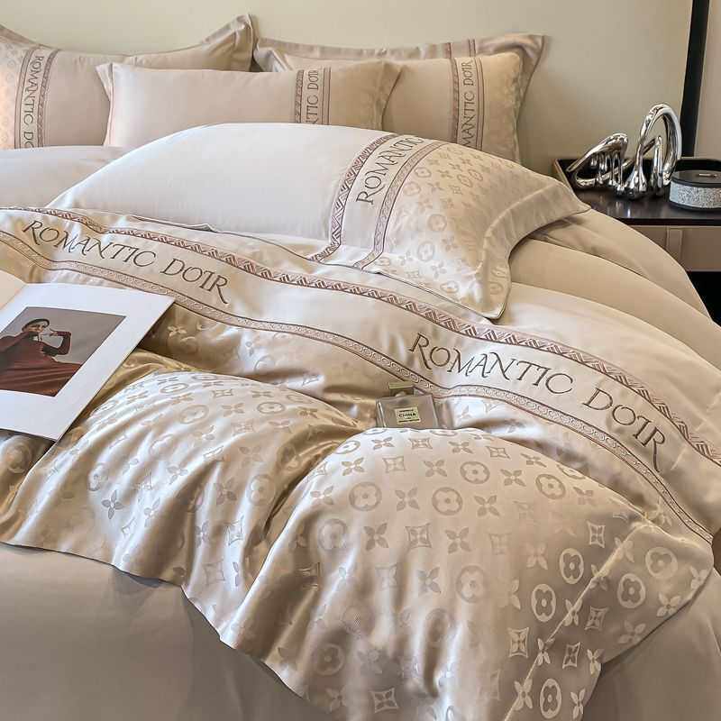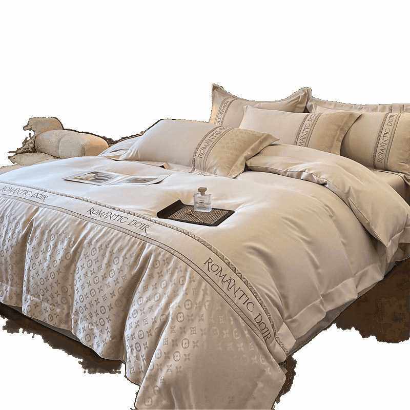 140支贡缎提花四件套冰丝被套夏季床单丝滑凉感被罩轻奢床笠床品4