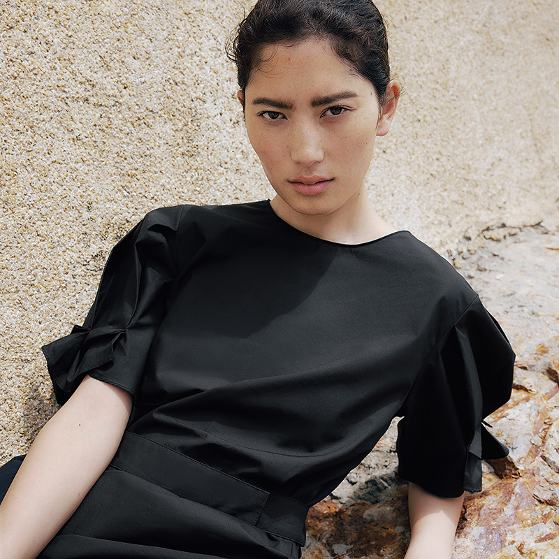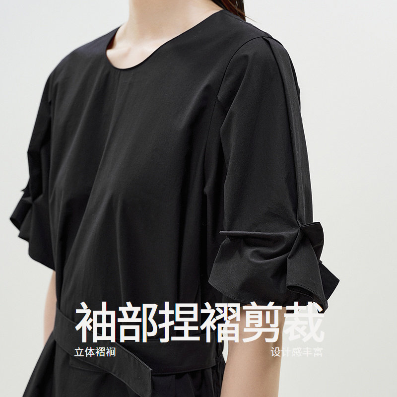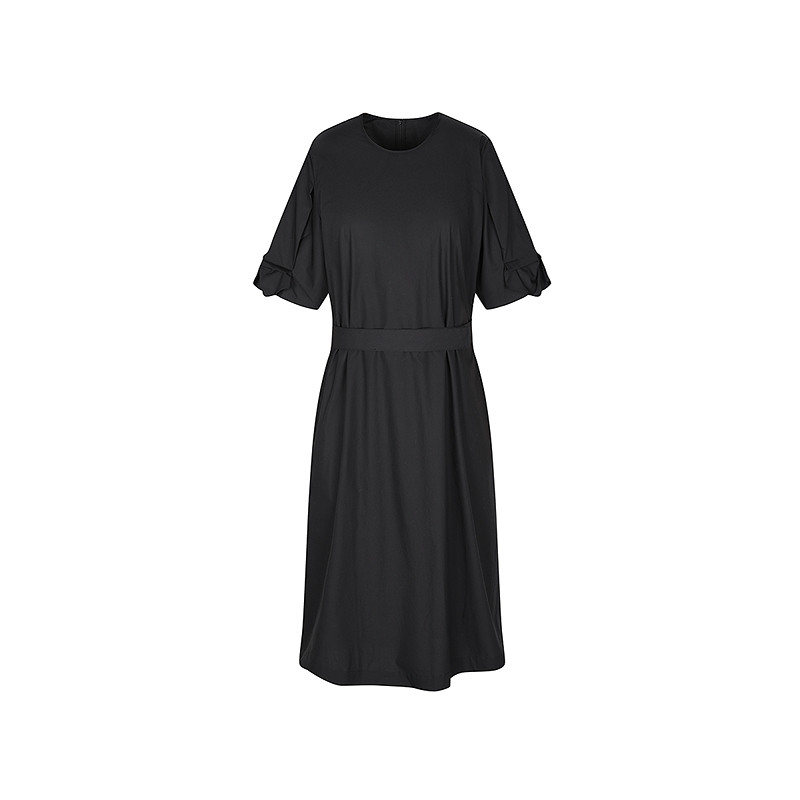LESS夏收腰泡泡袖中长裙简约通勤时尚气质短袖连衣裙2P4G10380
