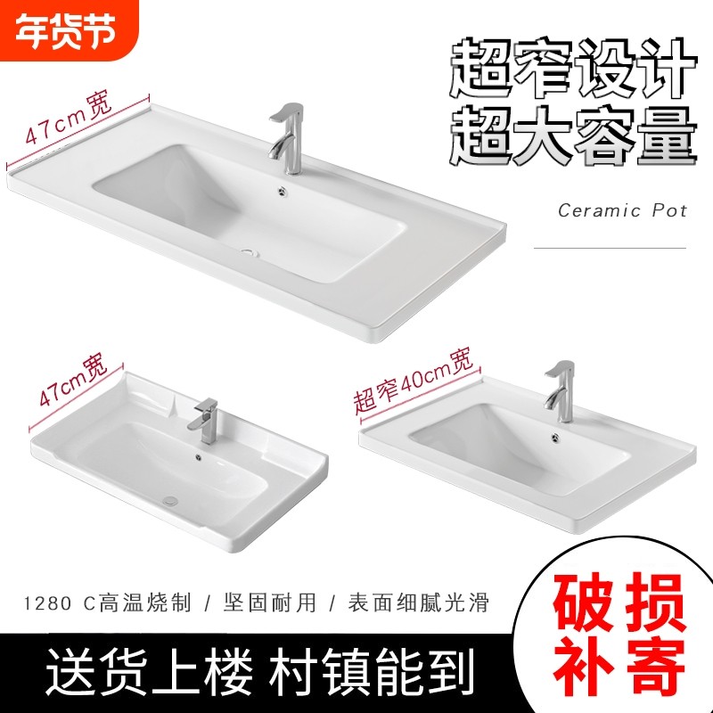 洗手盆单盆一体陶瓷洗漱台半嵌入式台中盆浴室柜台面洗脸盆洗手池