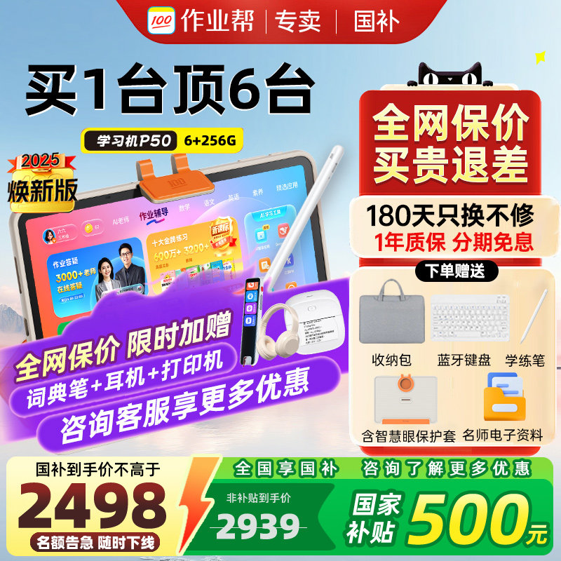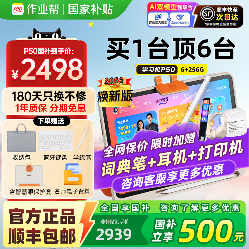 2025新款作业帮学习机P50学生护眼家教机学练机小学初中高中教材同步点读英语早教平板官旗正品直发T30P30T50