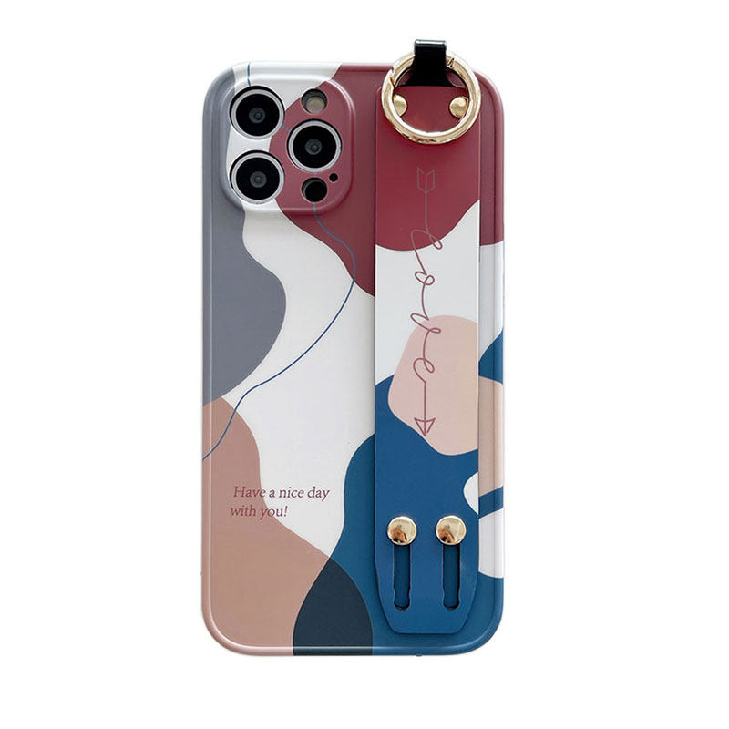 潮牌推拉隐形支架适用iPhone15ProMax手机壳新款14Plus高级感苹果13腕带手环防摔12个性创意卡通全包镜头保护
