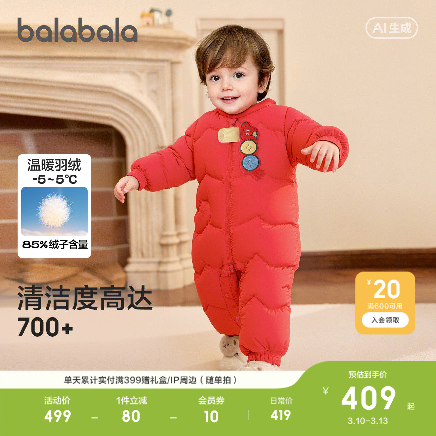 【商场同款】巴拉巴拉婴儿羽绒连体衣宝宝衣服外出爬服红色拜年服