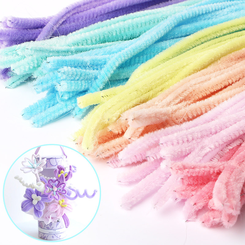 马卡龙毛根扭扭棒花束手工diy材料包妞妞棒包邮100根儿童彩色毛绒毛条新年红加密郁金香向日葵玫瑰花发箍发夹