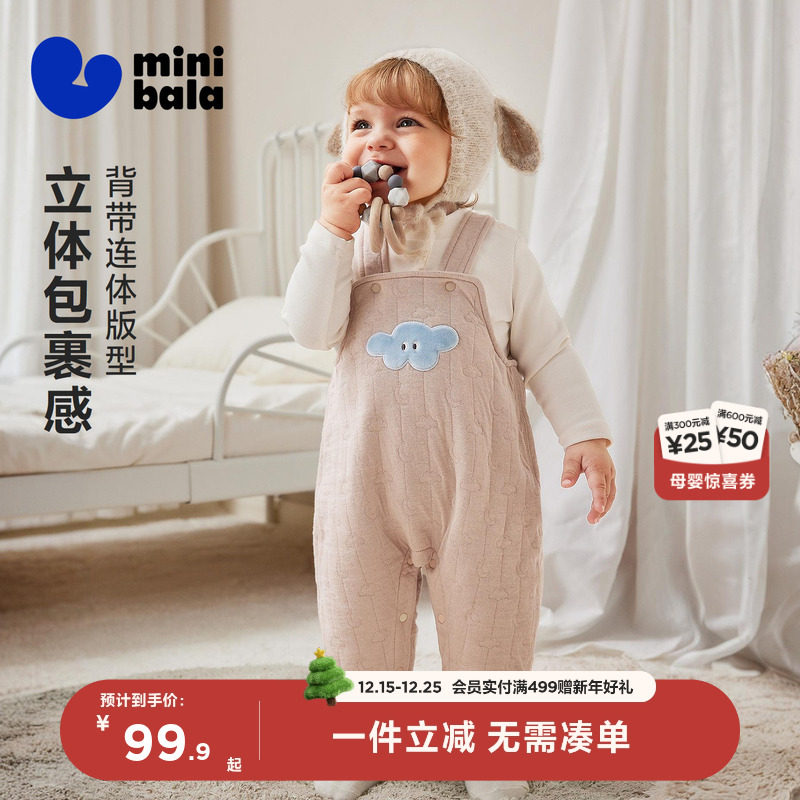 【夹棉】迷你巴拉婴儿衣服男女宝宝柔软亲肤保暖家居背带连体衣