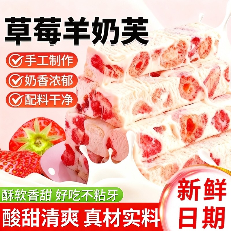 草莓羊奶芙拉丝雪花酥网红解馋零食休闲食品小吃美食好吃糕点心