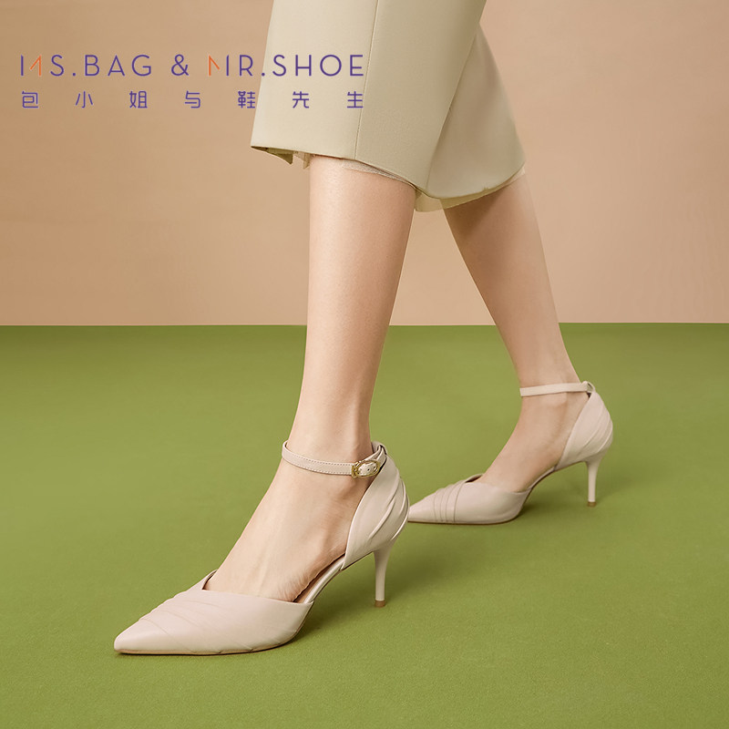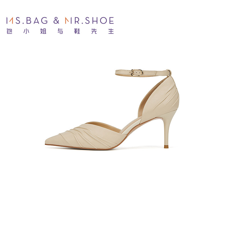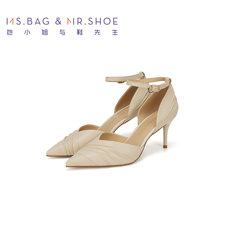 包小姐与鞋先生2025年春季新品羊皮掐褶工艺细跟中空凉鞋女251141