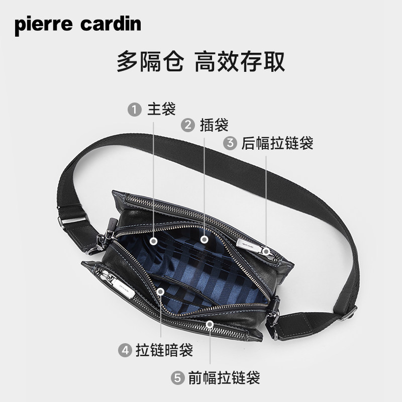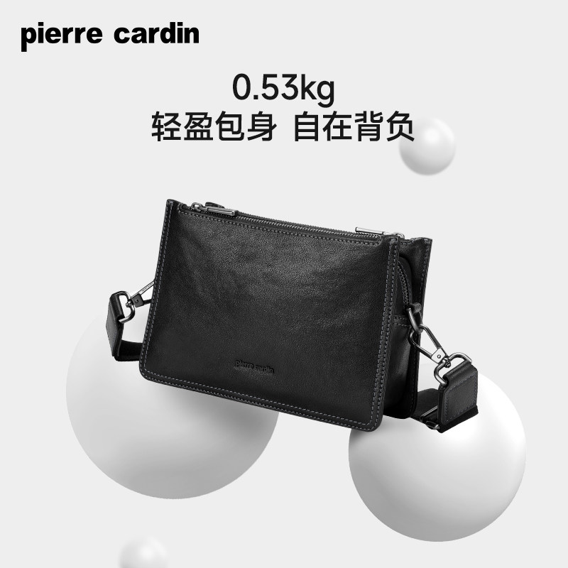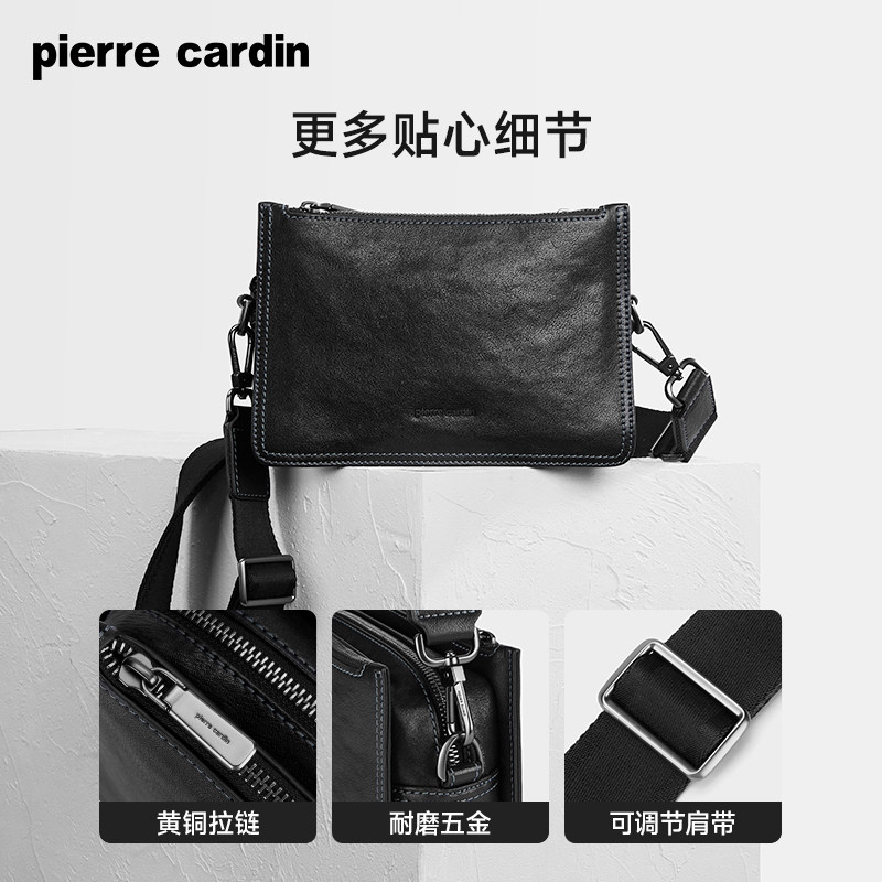 【真皮】皮尔卡丹男包商务简约男士单肩斜挎包男款通勤牛皮单肩包
