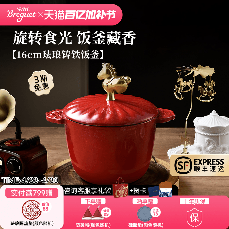 Breguet宝玑珐琅锅铸铁锅一人食焖烧锅炖盅无涂层多功能饭釜煮锅