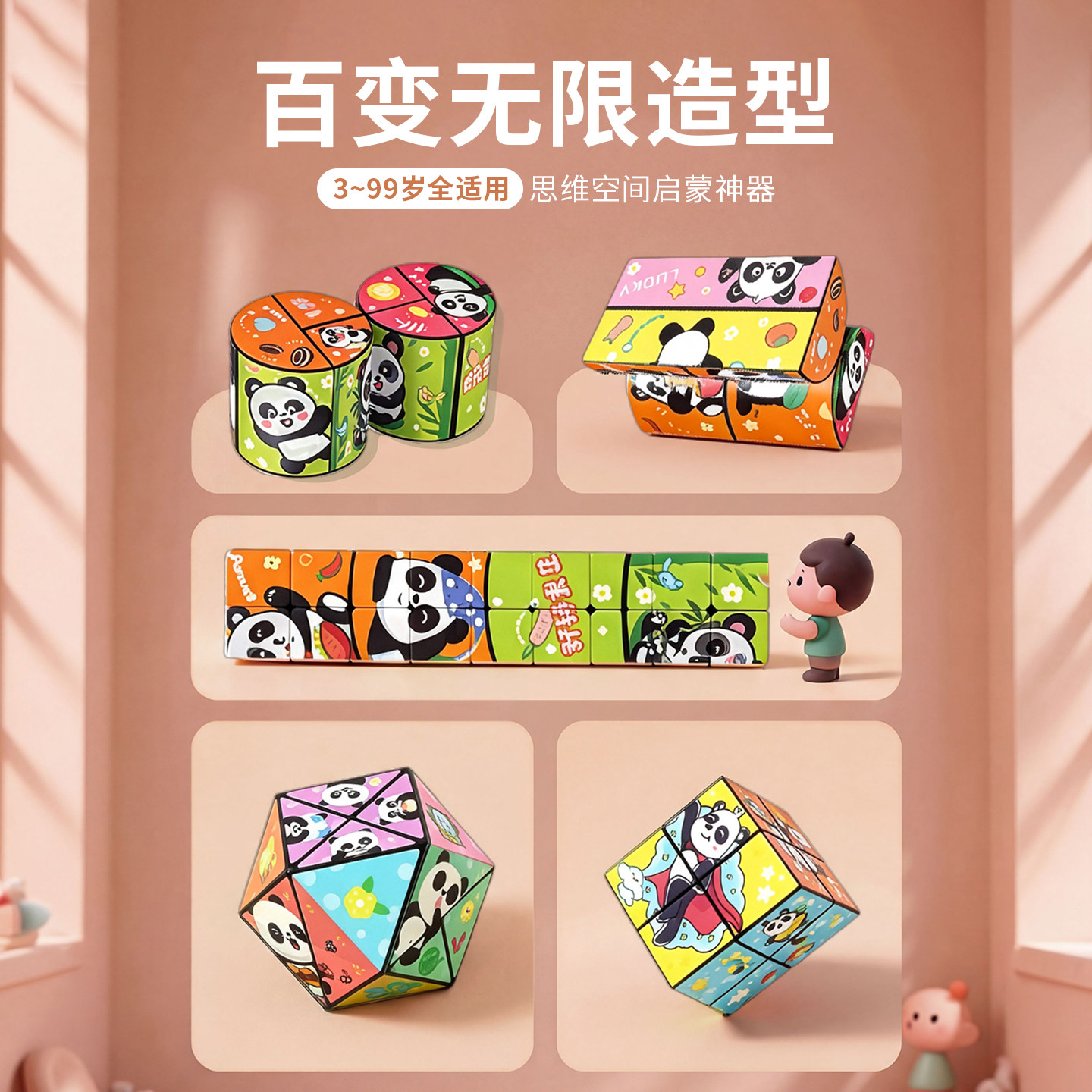 熊猫立体百变魔方儿童益智玩具3d无限翻转折叠幼儿园宝宝变形积木