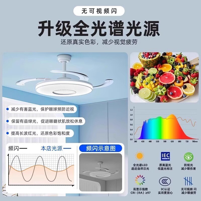 奥克斯吊扇灯风扇灯客厅2025新款餐厅电扇吊灯隐形带吸顶家用卧室