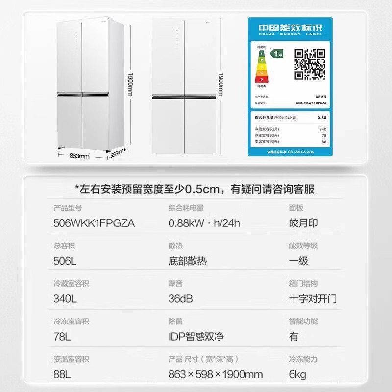 容声506WKK1FPGZA十字四门一级无霜家用超薄零嵌入式双净IDP冰箱