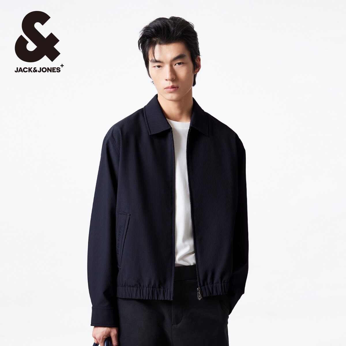 杰克琼斯男装夹克 外套春季新款男装宽松纯色拉链字母刺绣日常