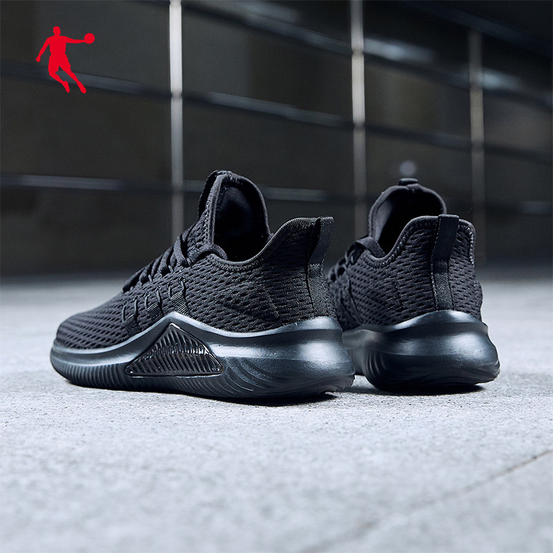 乔丹冬季皮面加绒防水运动鞋男鞋跑步鞋减震轻便软底黑色爸爸跑鞋