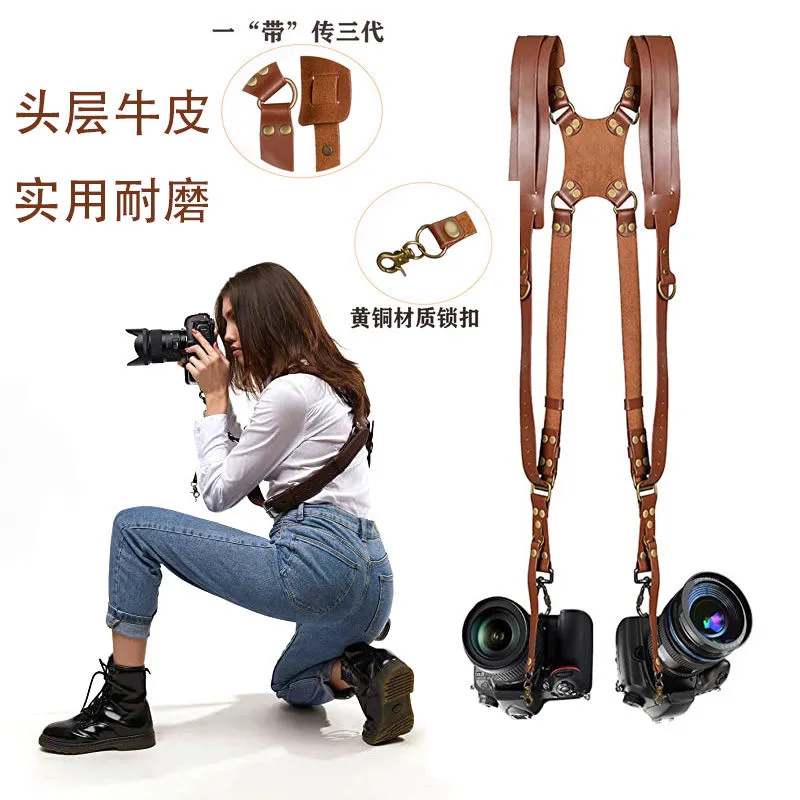 头层皮相机背带纯手工头层皮X型双肩带欧美复古摄影单反双肩带