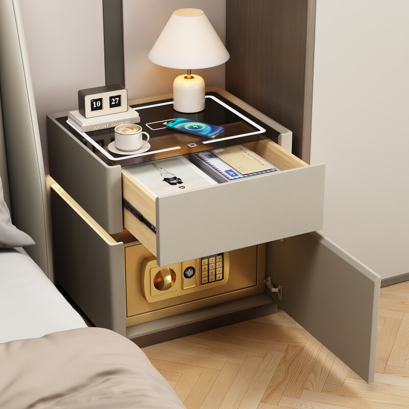 2026新款智能保险柜床头柜一体实木多功能收纳轻奢卧室抽屉储物柜