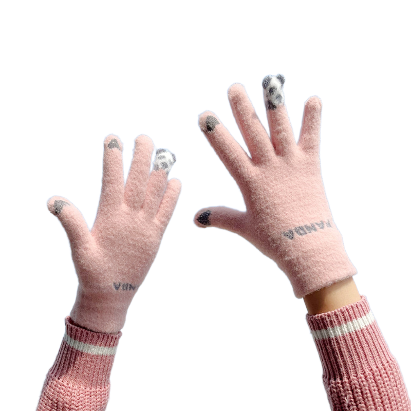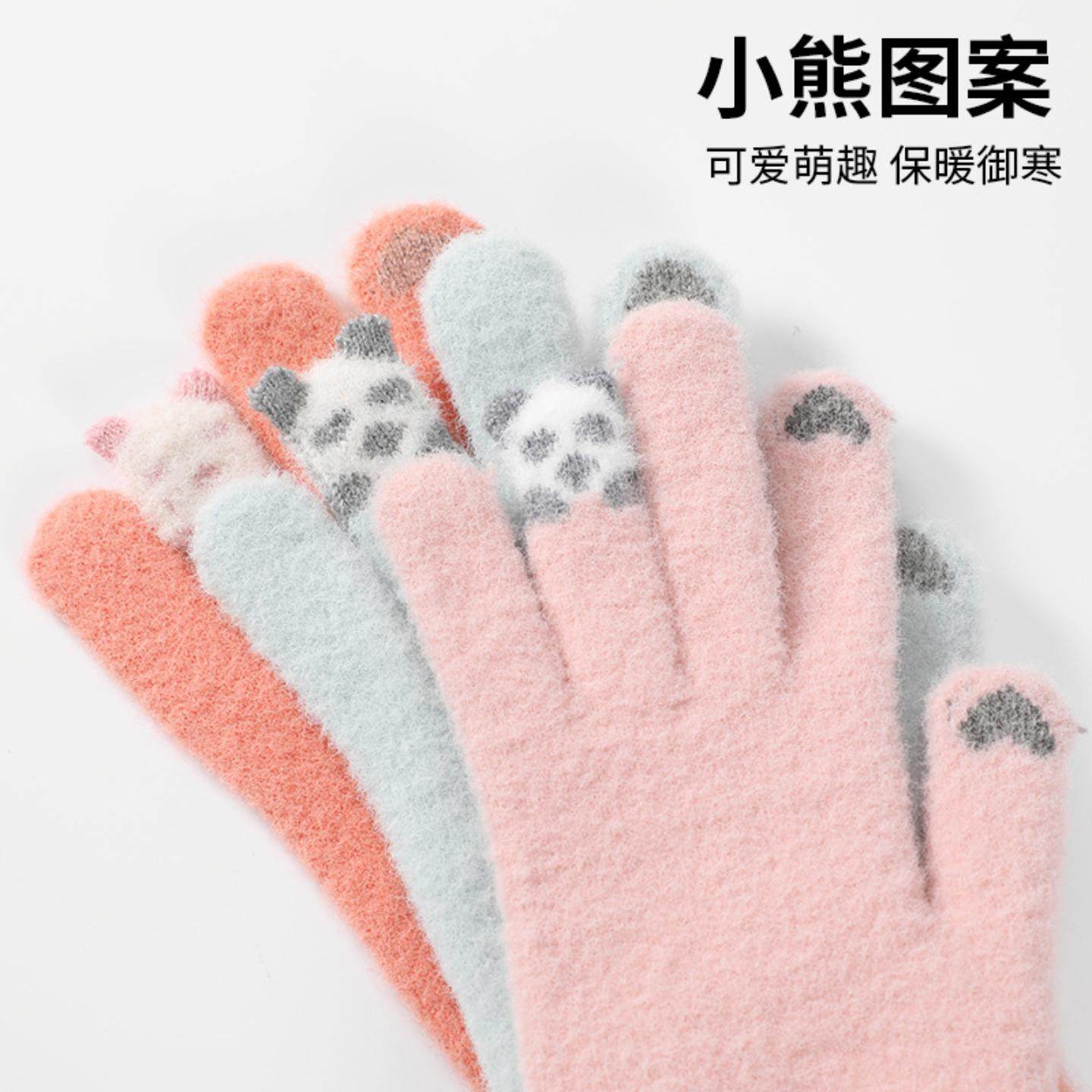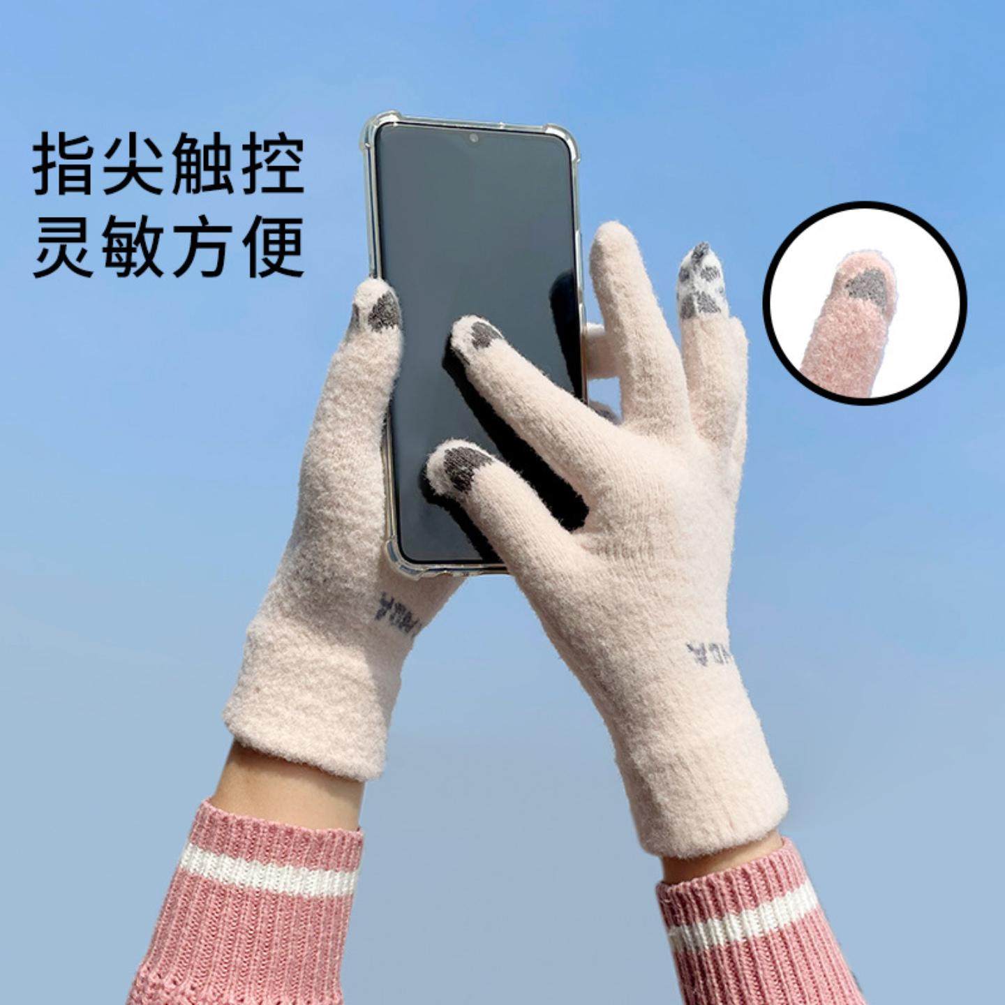 新款冬季毛绒手套女士防寒触屏骑车针织分指韩版可爱学生保暖手套