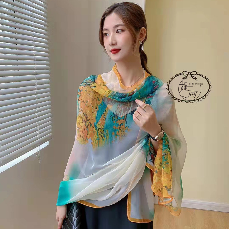 真丝丝巾围巾送妈妈婆婆生日礼物苏绣旗袍披肩桑蚕丝礼盒送长辈